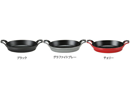●カラー:チェリー、グラファイトグレー、ブラック●素材:鋳鉄ホーロー●サイズ:縦:20cm、横:14cm、高さ:3.7cm●重量:1kg●種類:21cm鍋【特徴】*表面がザラザラ(黒マットエマイユ加工)している為、油が馴染みやすく焦げ付きを防ぎます。